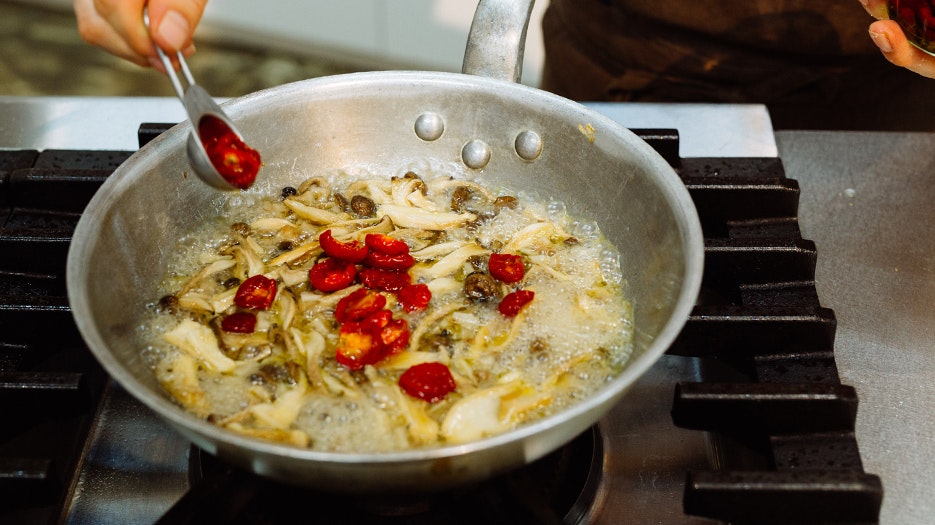 ねっとりとした食感を活かすため、セミドライトマトは最後に加えます。