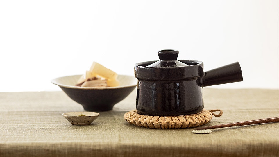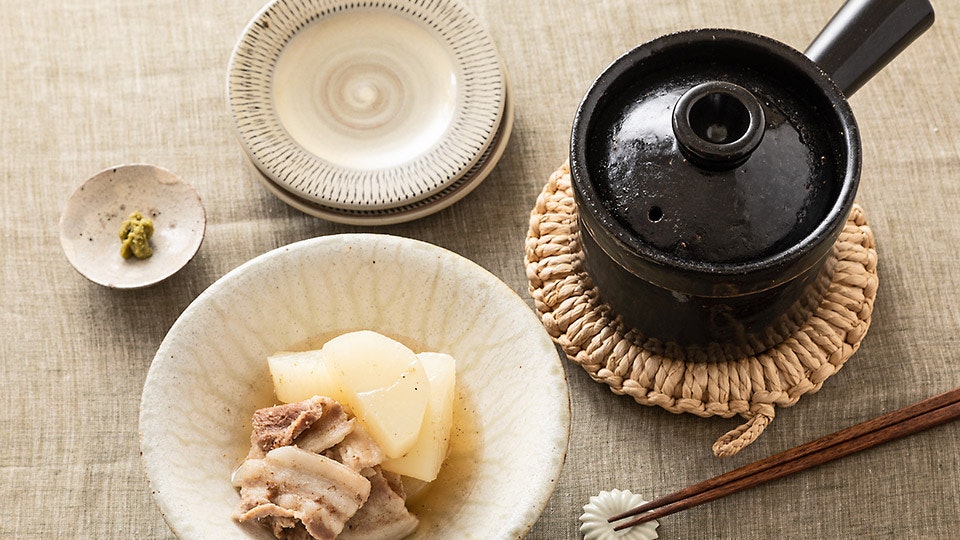 大根にすっと竹串が通れば、できあがり。火を止めたら蓋をしたまましばらく置いて、味を含ませましょう。保温性の高い土鍋は、そのまま食卓に出して器のように使っても。