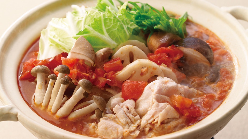 こちらも、味噌ベース。トマト仕立てですので、酸味が効いたさっぱり鍋です。