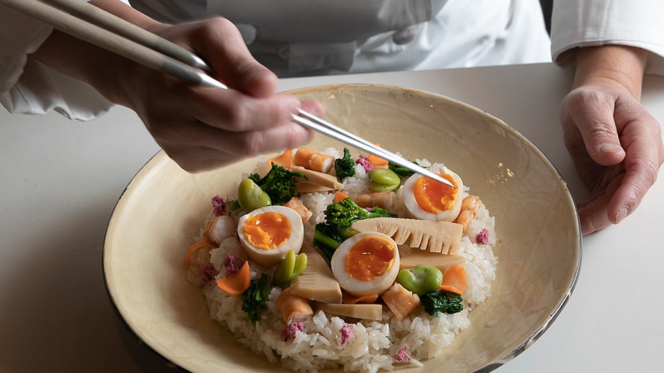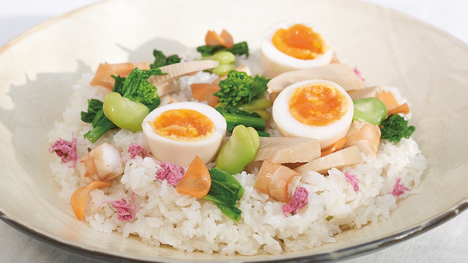 ひな祭りや入学・卒業、昇進、お引っ越し。人生の節目を迎える春は、お祝いごとも多いものです。そんな日の食卓を明るくしてくれる、春仕様のちらし寿司。食材の下処理など手間のかかる工程も、おだしと料理長の知恵でうれしい手軽さに。繊細な春の食材をやさしく包む「昆布だし」で仕上げました。