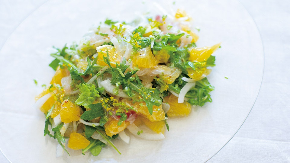 新玉ねぎと鯛と柑橘のサラダ