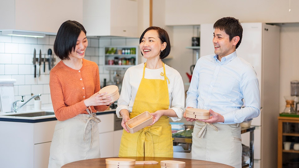 お弁当は日本古来の食文化。せっかくなら「曲げわっぱでお弁当を作りたい」と、同じく編集スタッフの川口(2児の父)を誘って、料理家・森山いづみさんに曲げわっぱの弁当作りを習いに行くことにしました。
