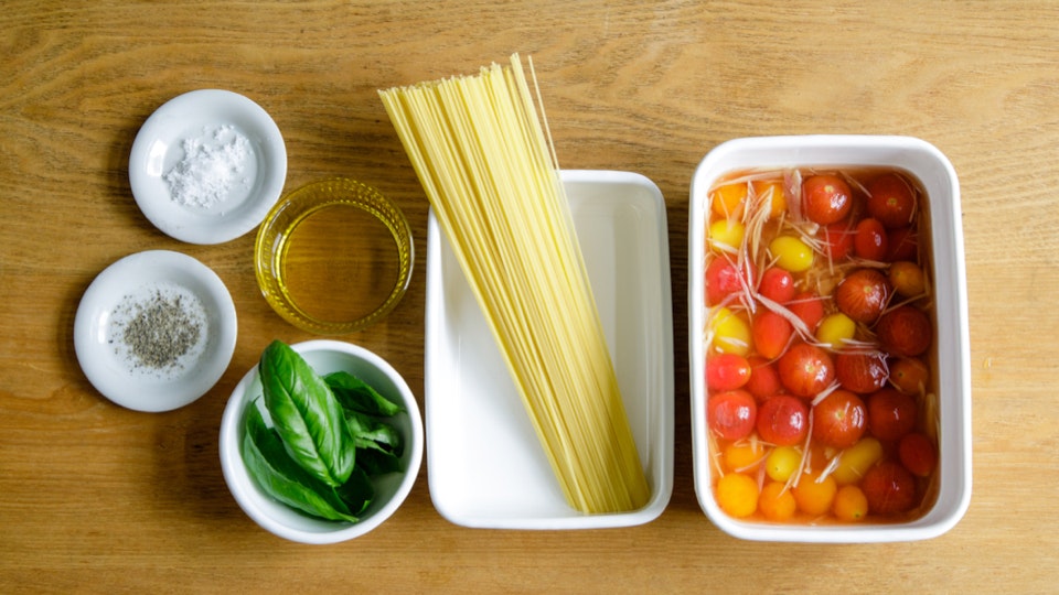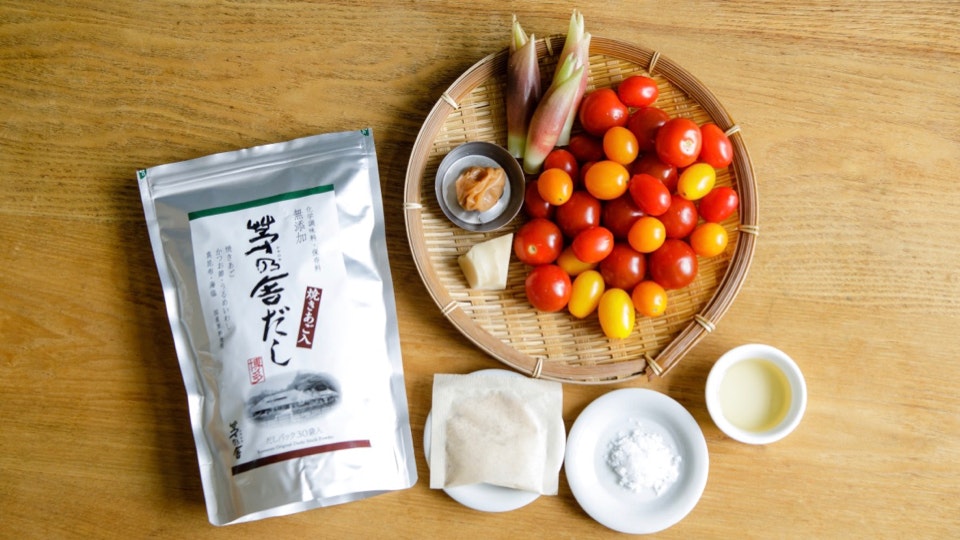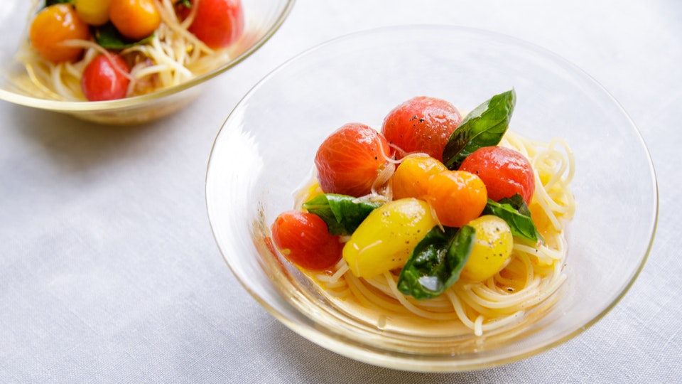 甘酸っぱいミニトマトに、夏の薬味を組み合わせた「だしマリネ」。細めのパスタと合わせれば、夏のランチに嬉しい冷製パスタの完成です。「スパイス系も無理かもってぐらい暑い日は、薬味に助けてもらう」という広沢さんの言葉も納得な、とっても爽やかな味わいです。