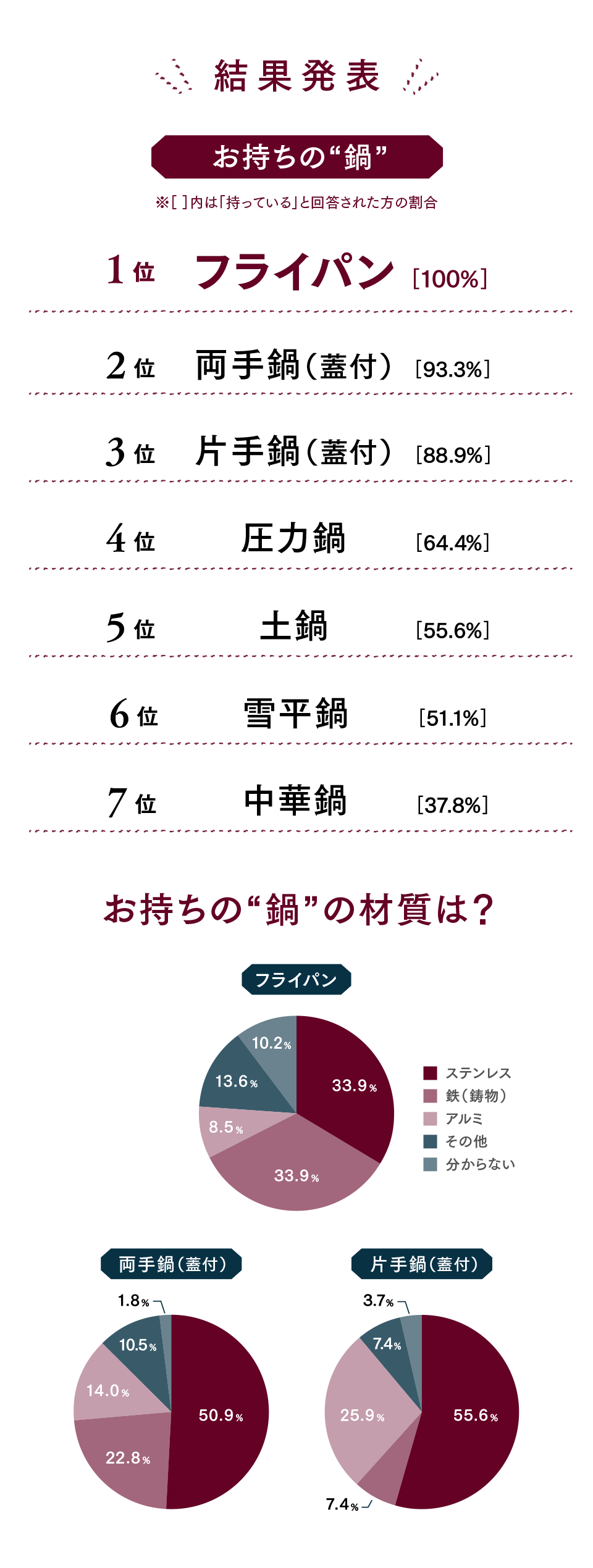 まずはお持ちの“鍋”のランキングから。上位3位の材質も合わせてご覧ください。