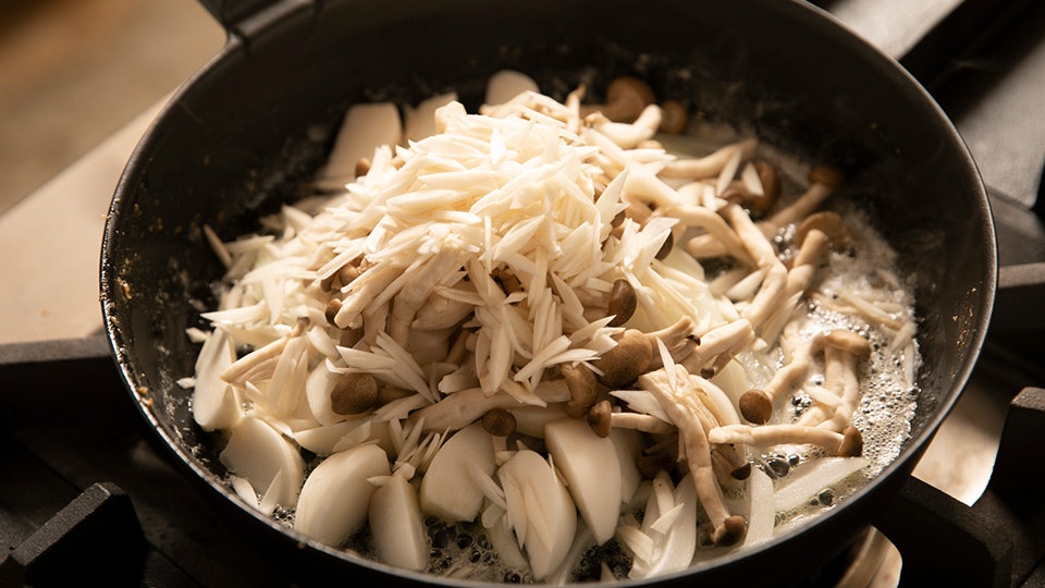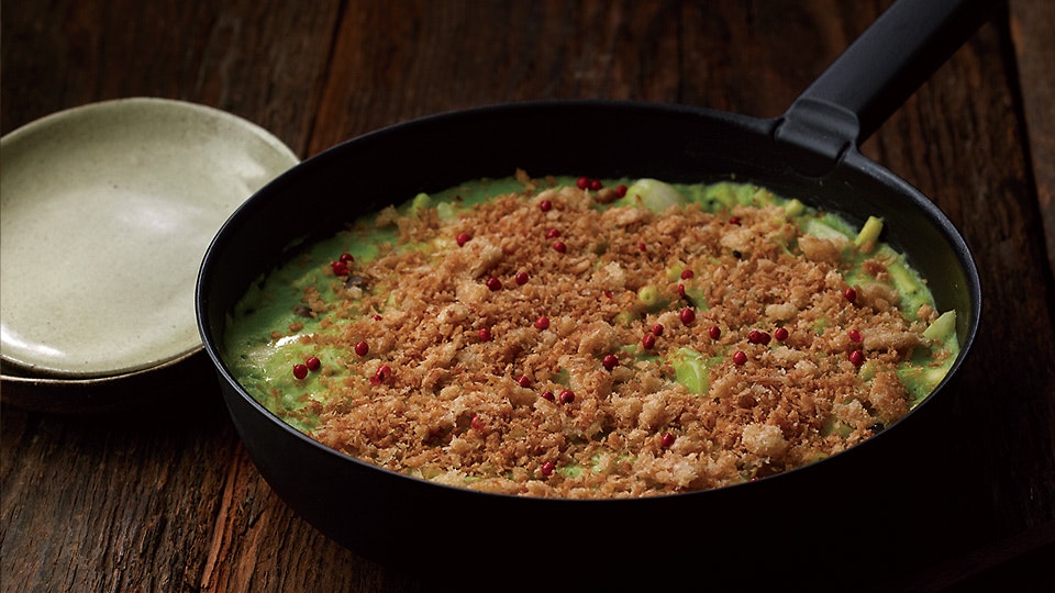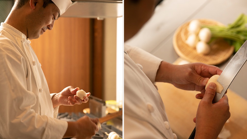 今回、かぶを丸ごといただくグラタンのレシピを「御料理 茅乃舎」料理長の尾﨑がご紹介します。オーブンを使わず、フライパンでできるよう工夫しました。