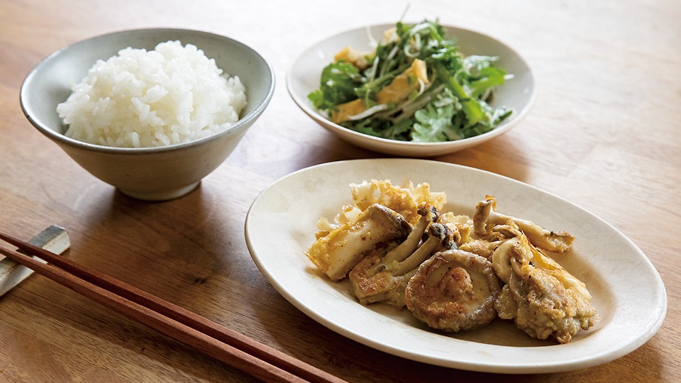 新米とおなじく秋に旬を迎えるきのこでつくる、韓国の家庭料理「ジョン」を教えていただきます。ジョンとは、お肉や野菜に薄力粉をはたいて卵にくぐらせて焼くピカタのような料理。とても薄い衣なので、きのこの食感もうまみもそのままに味わえ、しかもとっても簡単なのが嬉しいのです。