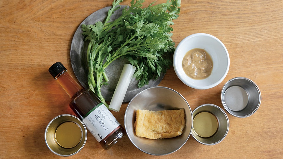 一緒にちゃちゃっとつくれる「焼き油揚げと春菊の胡麻あえ」もご紹介します。