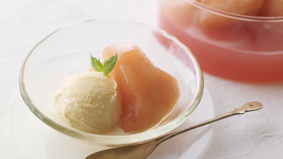 甘さ控えめな味わいのデザート。アイスと一緒に食べていただいたり、余った汁はヨーグルトにかけていただいたり。至福のひとときになります。