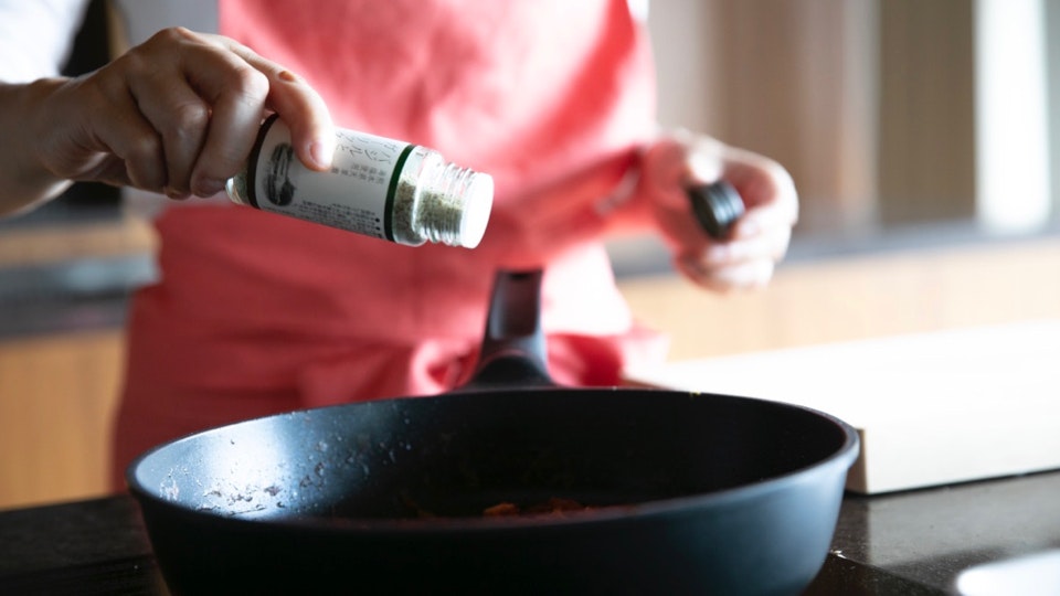 仕上げにバジルとガーリックのソルトを振りかけます。一瞬でイタリアンに変身。