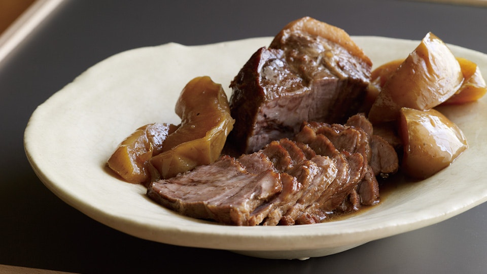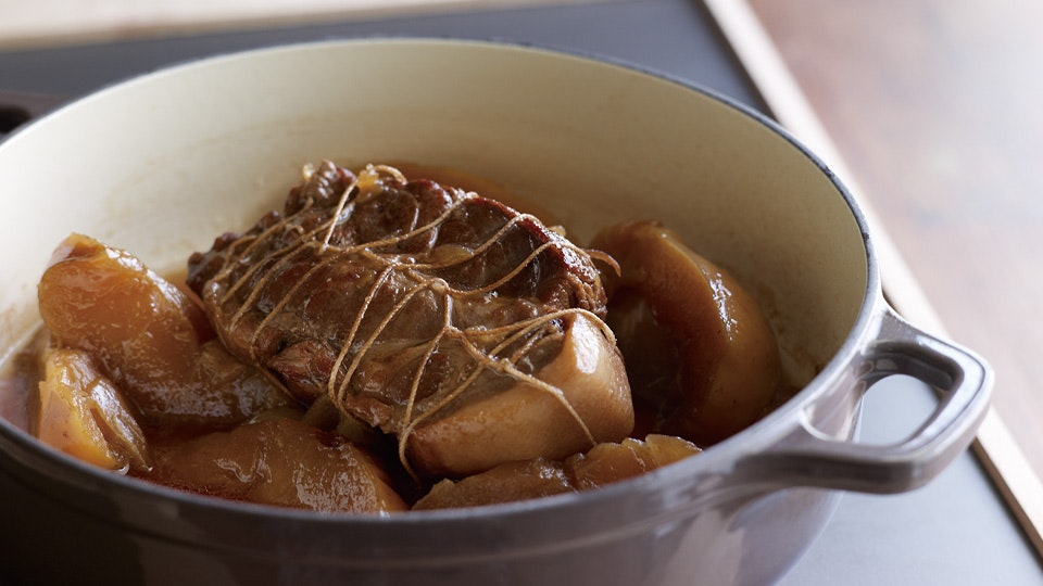 そして“ひま”ポイントは、弱火で40分ほど煮込むこと。またそこに林檎があることで分解酵素が働いてお肉を柔らかくし、甘みとコク、ジューシーさがじわじわ増していきます。「林檎って、いい仕事をしてくれる」と思うのは、こんな時。