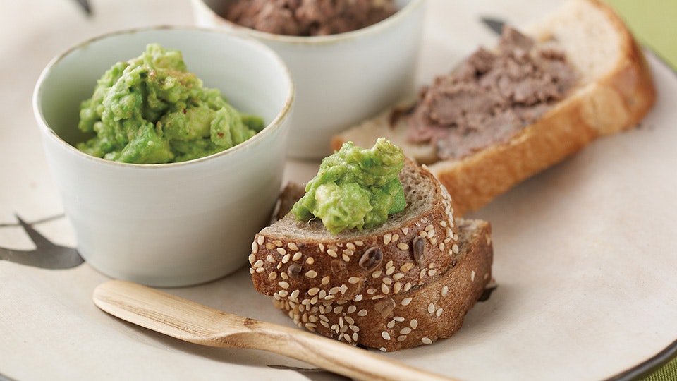 パンに塗るパテがよいのは、おもてなし時に用意しておくと、ぐっと「それらしく」なるところ。食事の前のオードブル、もしくは食後のワインとともに。そんな「場」と「間」が持つひと品にも、だしがよい仕事をしてくれていますよ。こちら鶏レバーとアボカド、色もとりどりのだしパテです。いずれも茅乃舎だしの袋を破って混ぜ合わせることで、味わいとクリーミーさが加わり、味が決まります。あまりのおいしさに思わず目を丸くするゲストの姿を想像しながら、作りましょう。
