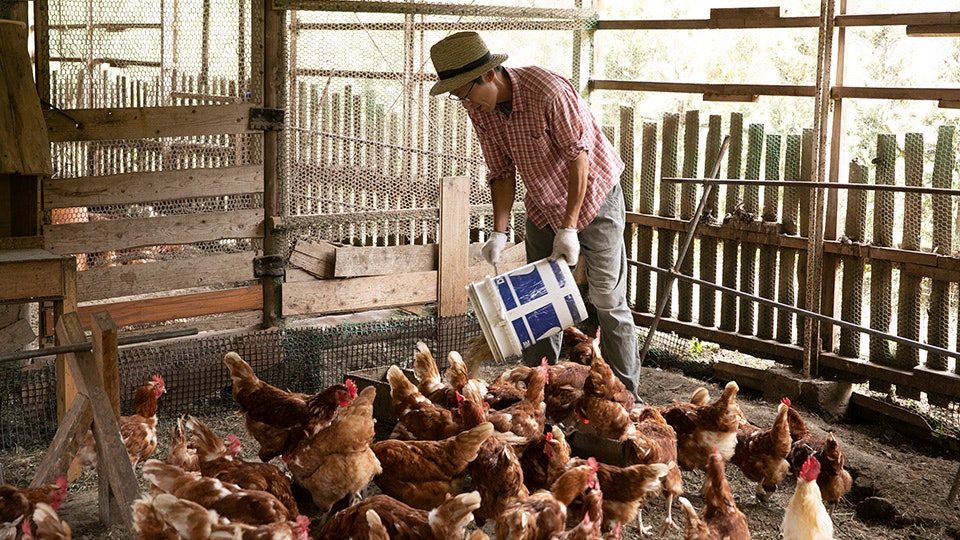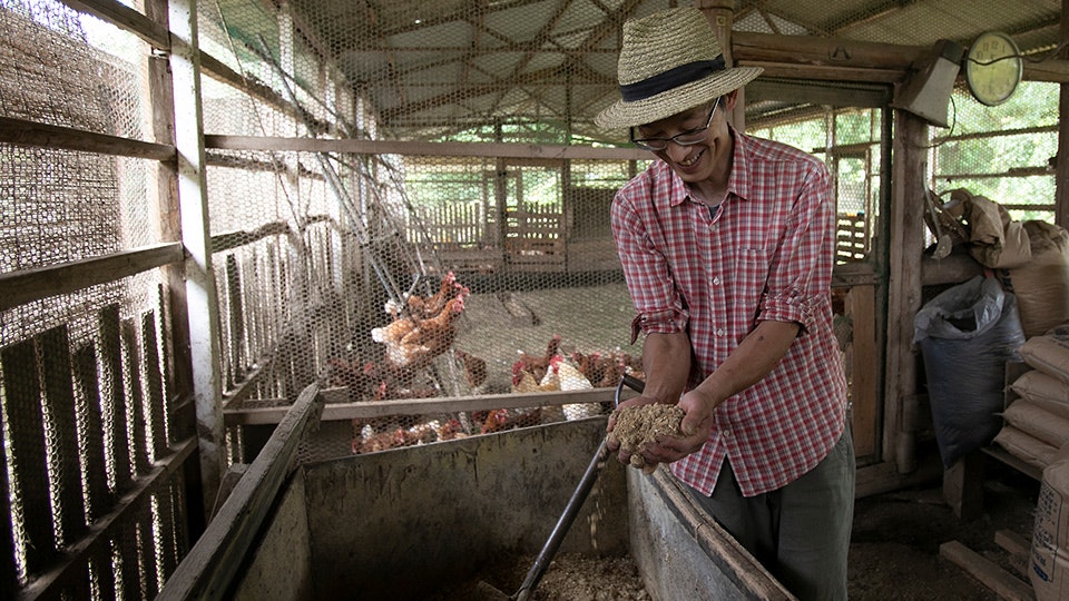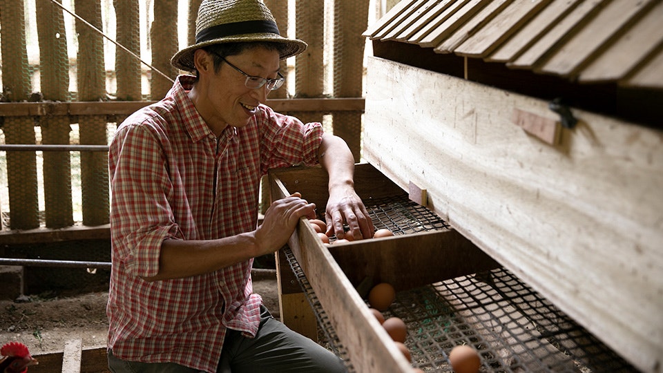 山の中で、餌をつくって、野菜を育て、鶏を養い、たまごをご家庭に配達する。