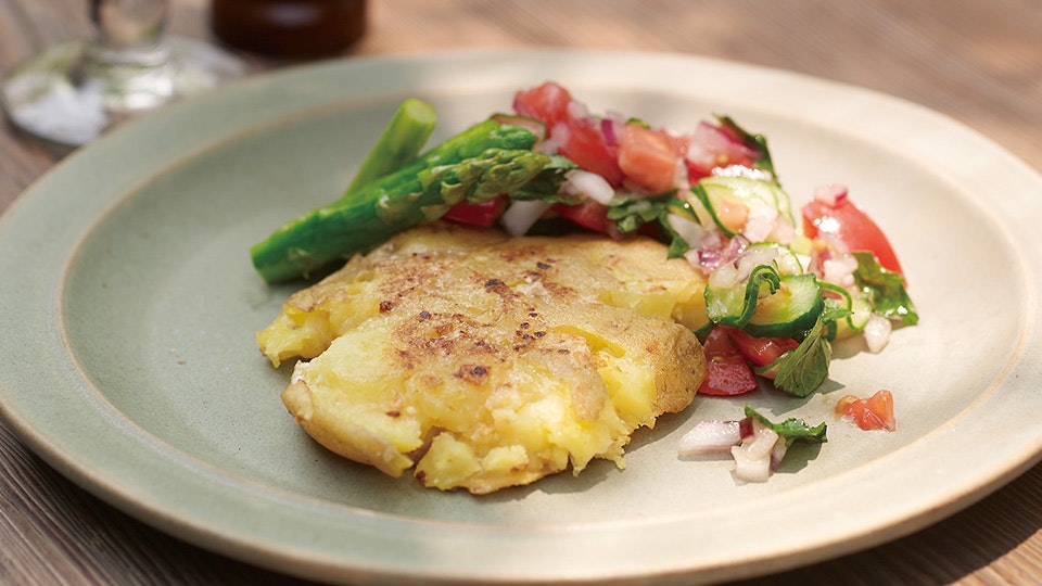 熱々のじゃがいもに、冷たい野菜サラダを絡めて一緒にお召し上がりください。