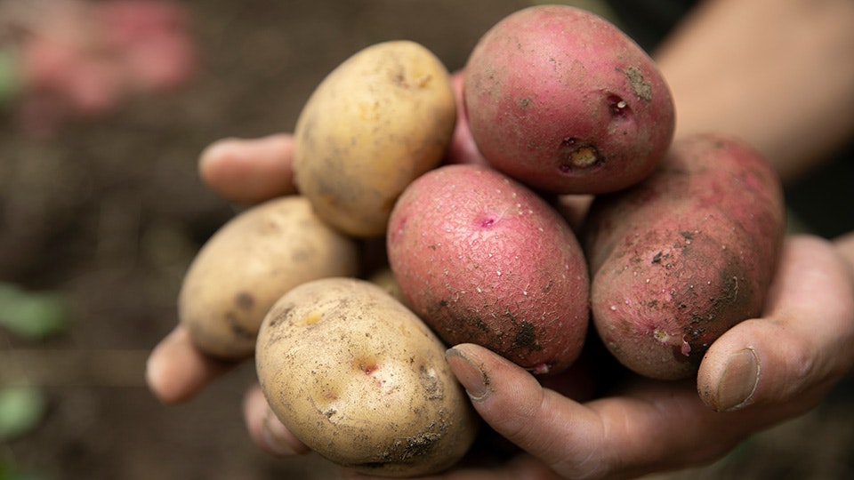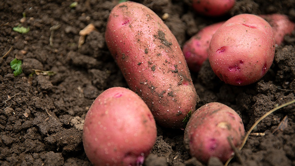 むっくりと土から出てきたのは、赤いじゃがいも。ほんのり蜜っぽくて、くりっとした味わいの「レッドムーン」という品種です。ポテトサラダにすると、それはもう、格別なんだそう。もちろん、馴染みのあるじゃがいもも。