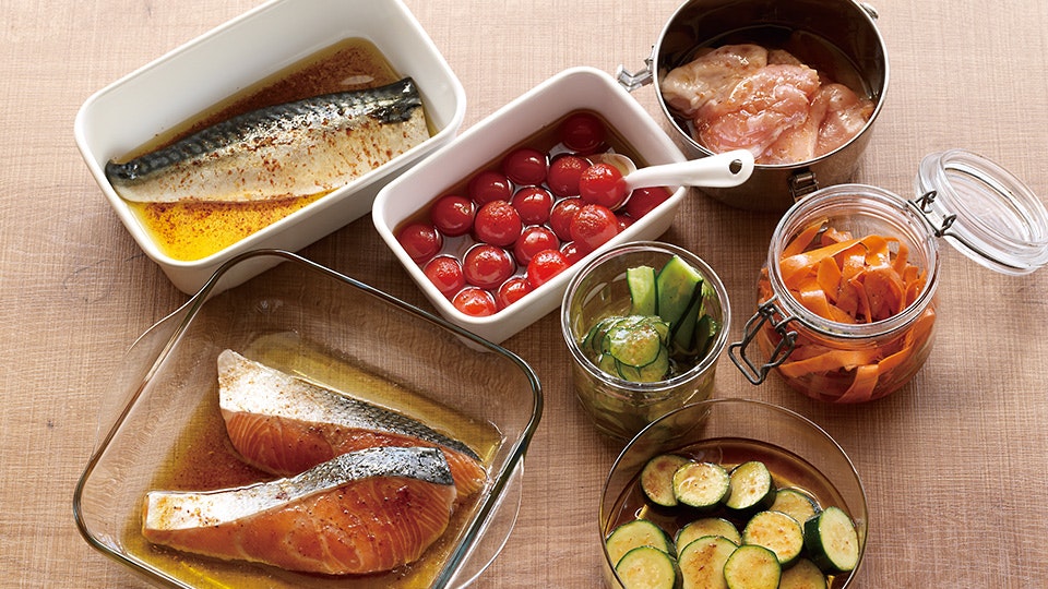 野菜、肉、魚、いろいろな食材をだしオイル漬けにしたのですが、だしが効いているので、野菜をそのままサラダとして食べたり、サンドイッチやパスタの具にしたり、調味しなくても味が決まるので手軽で万能。「だしってすごい!」と改めて実感しました。