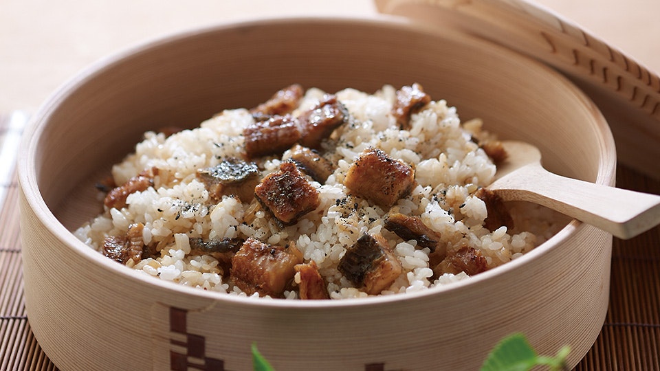 香り高いだしごはんが炊き上がったら、甘辛いたれで焼き上げた鹿児島県産鰻をやさしく混ぜ合わせて。香ばしい皮目、ふっくらとした身、見るからにおいしそう~。