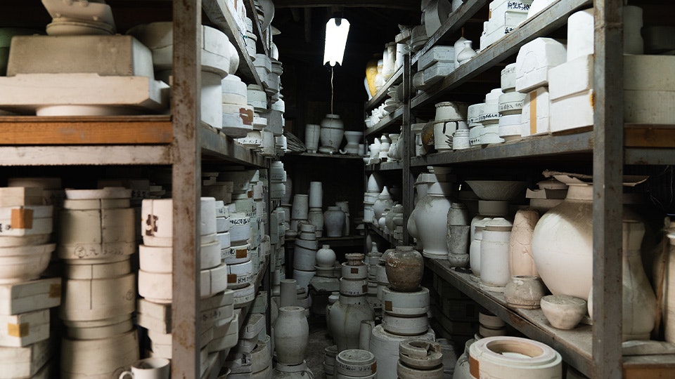 しのぎ深丼のデザインは造形デザイナーの故・深川篤さんのデザインで、原型もご自身で造形されたものです。また工房の奥には深川製磁の器の原型をすべて保管している部屋があります。「創業時からの原型を大切に保管し、いつでも制作が可能です。どの原型も私たちの宝物です」と深川 泰さん。