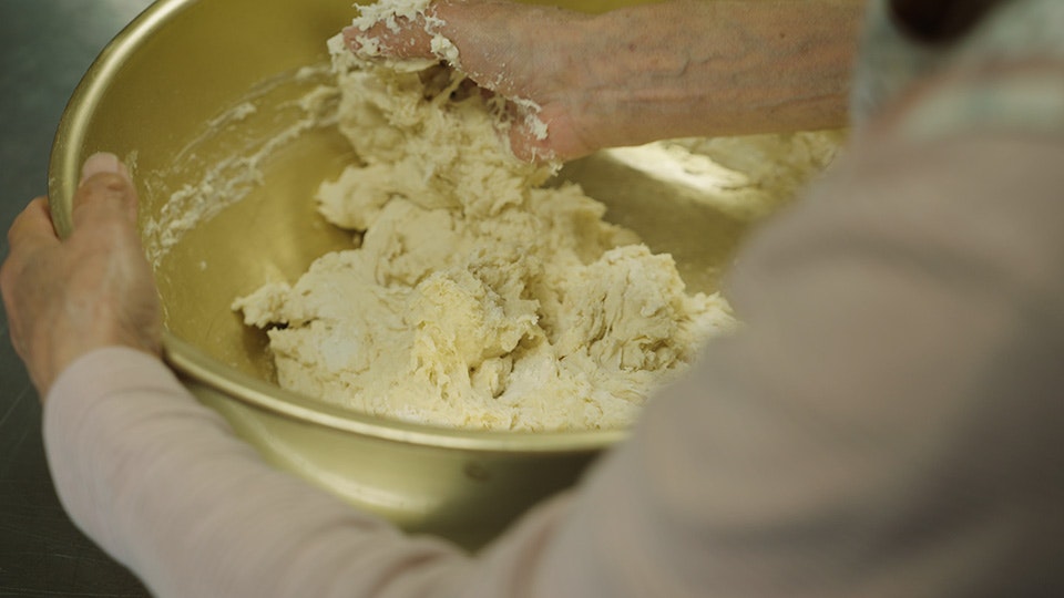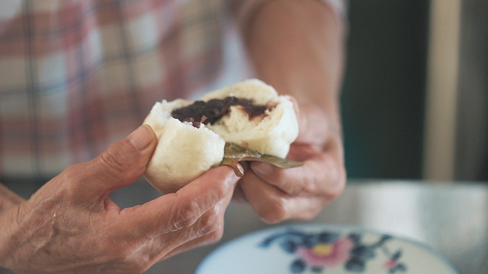 砂糖、塩、小麦粉にドライイーストを混ぜて水を加え、こねていきます。十分に捏ねたら、発酵を待つこと15分。ひとつかみ生地を取り、ばあん、と強い力で台に叩きつけます。これはお饅頭を“びっくり”させて、イースト菌の活性を促すため。しっかりと弾力のある生地を手のひらに広げて、真ん中にあんこをのせて包みます。しっかりと15分ほど蒸すと、ふかふかと優しいにおいが漂ってきます。