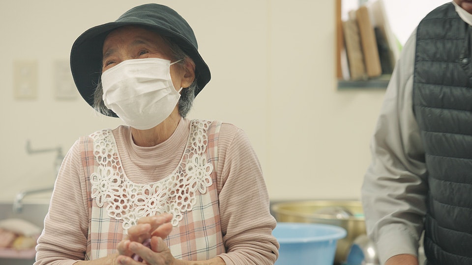 「今日蒸し器があるというので、急遽作ってもらったんです。かんころの粉を練ったものをぎゅっと指で握ってね、指の跡がつく、これが特徴なんです」。皆が懐かしいと口々に言いながらだんごを手に取ります。「さつまいもはね、一生分は食べたんです(笑)。もう食べなくて良いと思ったのですが、私もいま65歳になったんですけどね。そうすると子供のころ、小学生ぐらいのときに食べたものが恋しくなる」