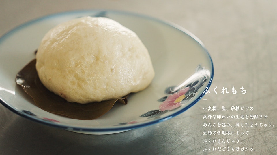 「ふくれもち」は、小麦粉に塩、砂糖の生地にあんこを包んだ、素朴な味わいなおまんじゅうです。五島列島の各地で昔から作られており、呼び名も「ふくれもち」「ふくれだご」「ふくれまんじゅう」などさまざま。実はこのおまんじゅうは、信徒の方々にとっては聖なるパン、すなわち聖体の代わりに食べられていたという話もあります。
