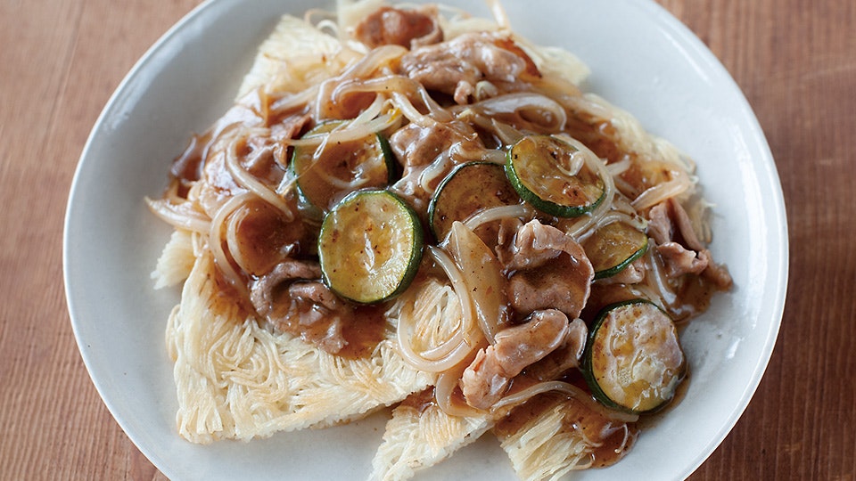 さらに「焼く」は、麺をゆでて少し経ち、ザルのなかでかたくなってしまった時にも使える方法だと思います。具も今回のように豚肉、玉ねぎ、ズッキーニともやしだけでなく、いろいろと応用できそう。まさに素麺の新しい扉が開いた、そんな気がします。