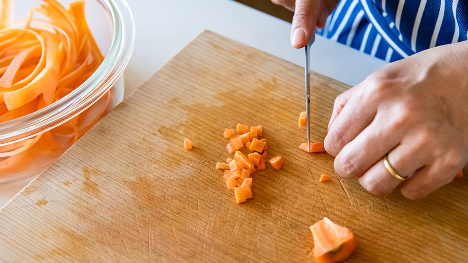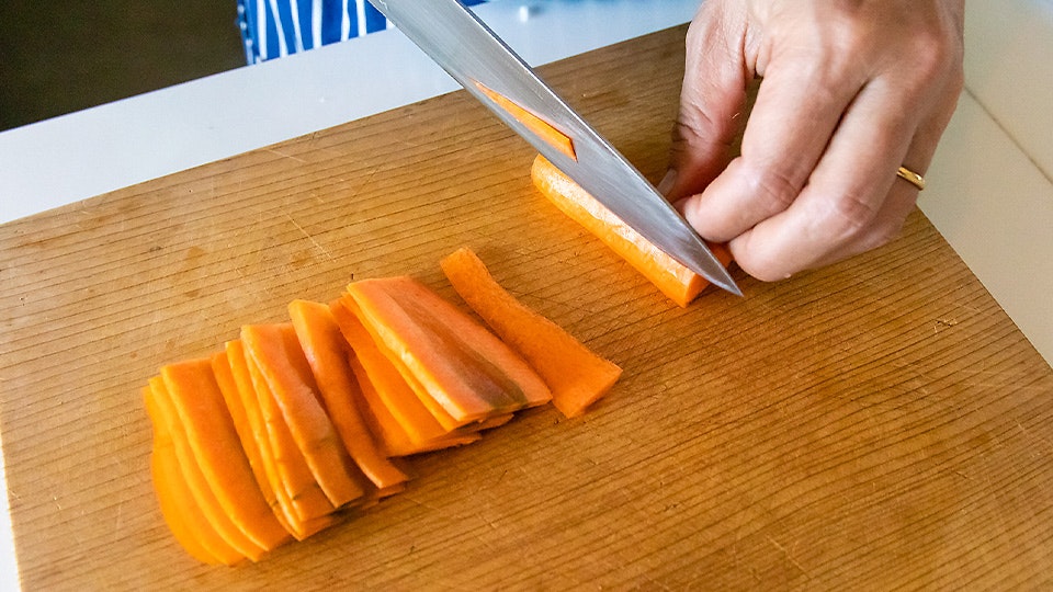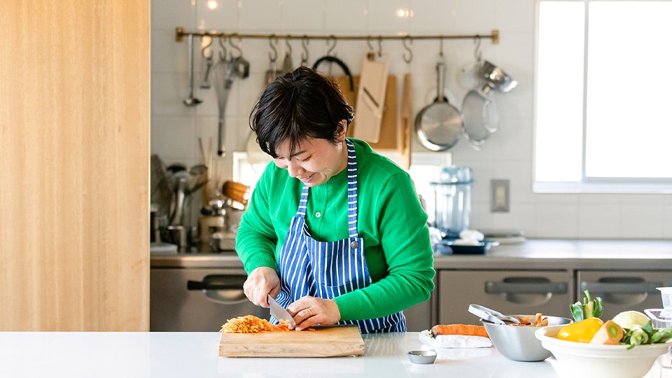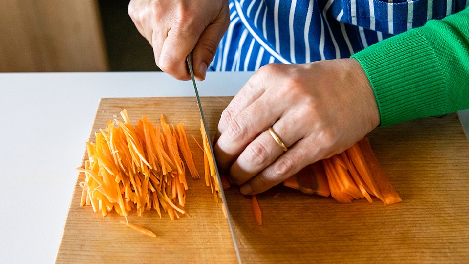 たとえばにんじんを使って、サラダをつくるとき。「どの切り方がいいとかじゃなくて、歯ごたえを残したいなら繊維に沿って薄く切ってから千切りにするし、しんなりとした感じが好きなら、繊維に沿ってピーラーで薄切りにします」