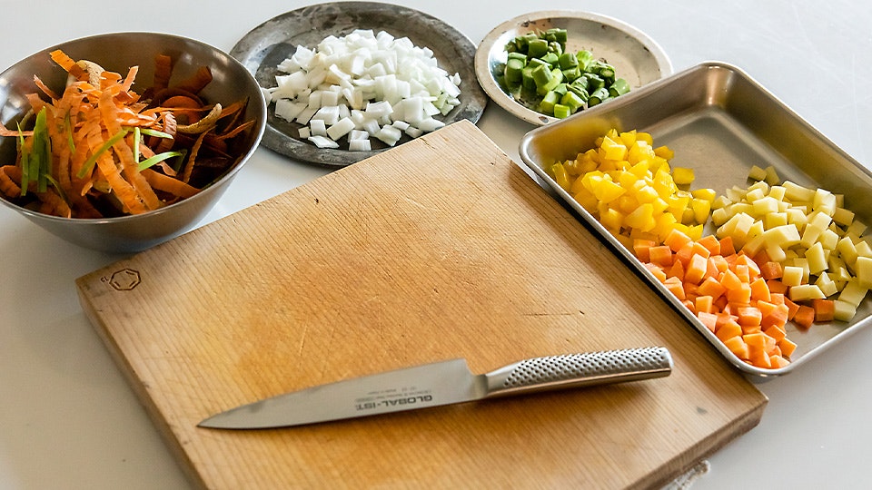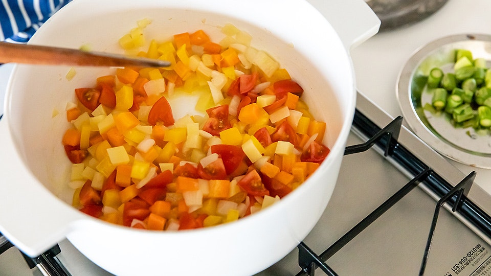 そして、ミネストローネスープをつくるときには?「コロコロとした食感を楽しみたいから、さいの目切りにします。