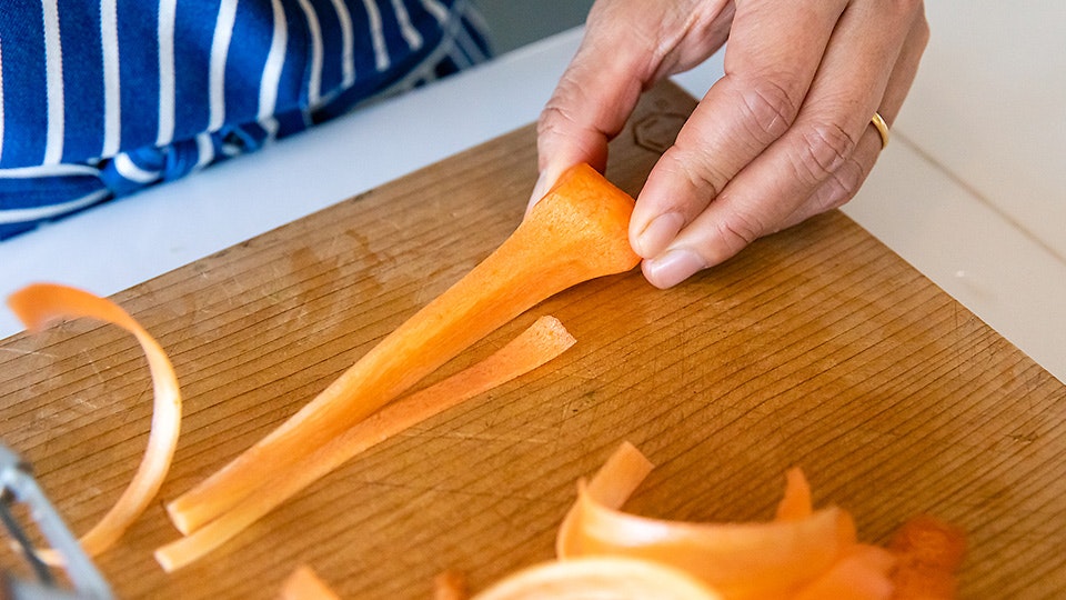 「たとえばにんじんをピーラーで薄切りにする場合、どうしても手に持った根っこの部分が残ってしまいますよね」