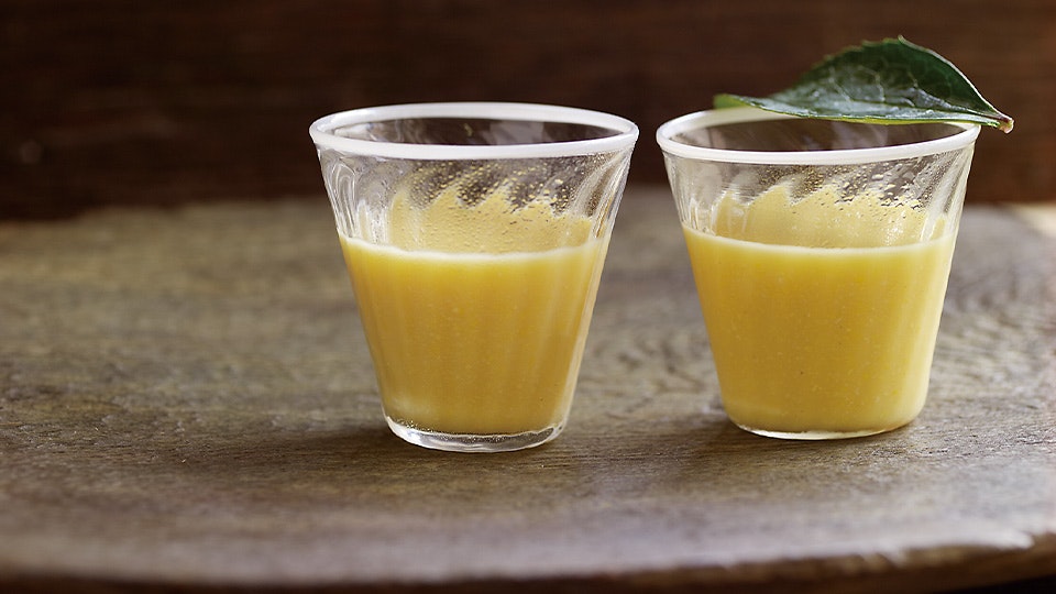 とうもろこしのおいしさと栄養をまるごと、しかも食欲のないときでもするするいただける、すり流し。お気に入りのグラスに注ぐと、黄色いルックスもうっとり、じっと見入ってしまいます。