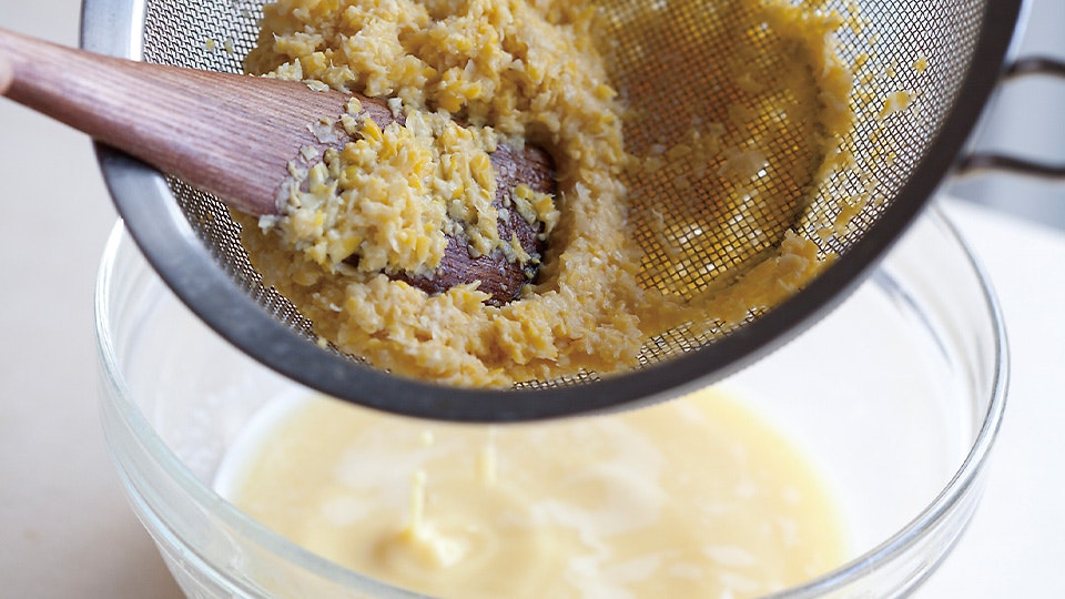 こうすることで皮の食感が取り除かれ、さらさらとした質感になります。冷蔵庫でよく冷やしてから、ひとくち飲めば、あぁ甘い!