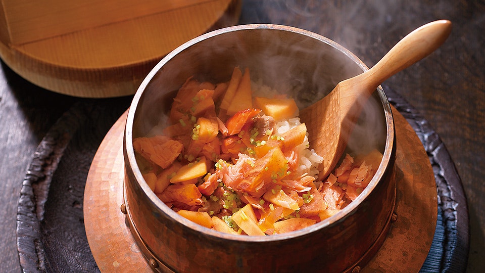「茅乃舎だし」柿と焼き鮭のだし炊きごはん