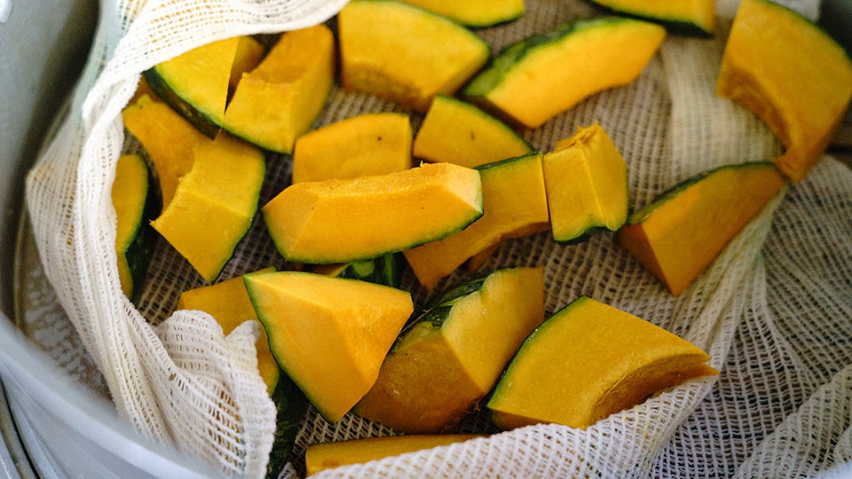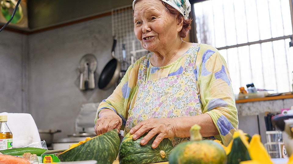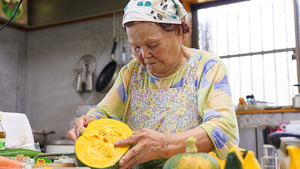 「かぼちゃを蒸したものは、味噌汁に入れたり、ごはんにのせたり、使い道はいろいろよ」。