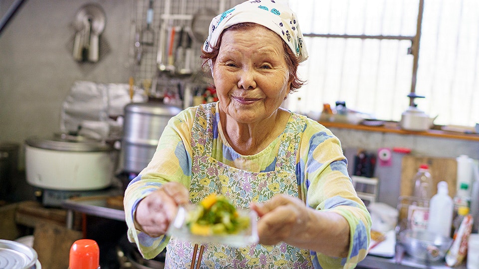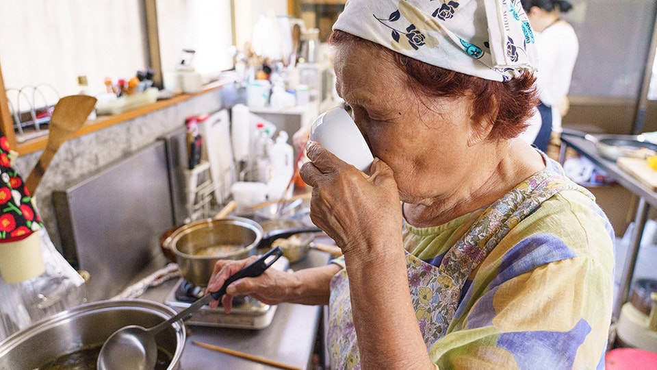ばっかし料理を習うのは、いつも料理の原点を思い出させてくれる長野おばあちゃんこと、長野路代さん。福岡県飯塚市の農家の生まれ、農産加工品を手づくりする「野々実会」の代表でもあり、「御料理 茅乃舎」では立ち上げからずっとアドバイスをいただき、コース料理には「路代おばあちゃんの一品」も取り入れています。
