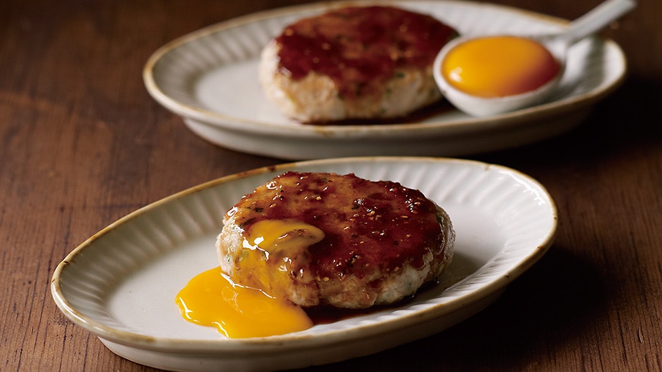 そして、このレシピは鶏ひき肉と蓮根のつくねにも椎茸だしを入れているので、さらにうまみは助長され、お好みで卵黄をからめたなら……もう。