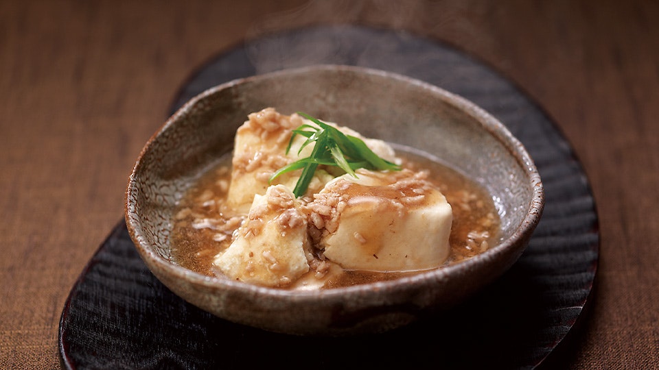うれしいのは「飲める」ところ。あまじょっぱさと、あたかも椎茸のかさのようにふわりと広がる深いうまみ。ふわふわの豆腐を、とろとろのあんかけだしとともにいただくと、ふぅ、と幸せのため息がもれ出てしまうのでした。