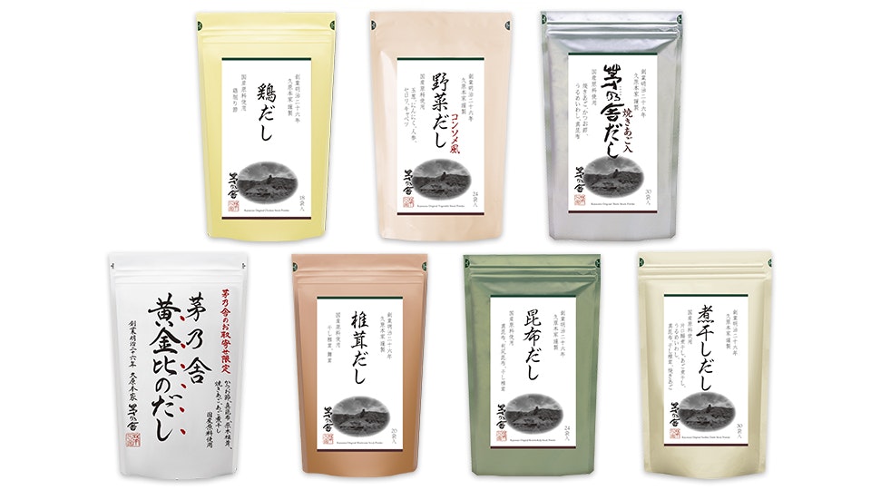 茅乃舎には、常時、7種のだしをご用意しています。それぞれどんな風に違うの?どうつかったらいいの?と迷われる方もいらっしゃると思います。今回は、7種のそれぞれのだしのおいしさをご体感いただけるお料理を、料理家 尾身奈美枝さんにご考案いただき、ご紹介します。