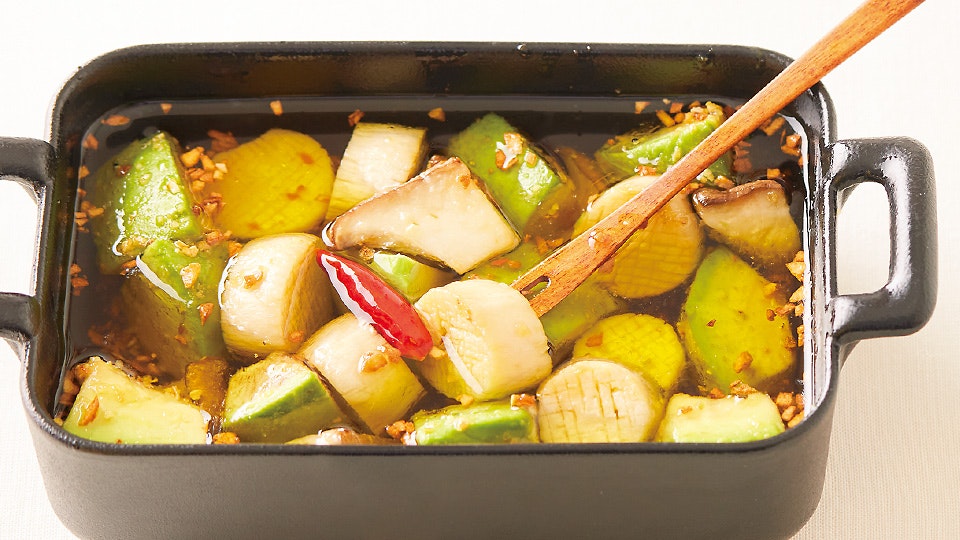 えっ、あっ、ヒージョ|だしを素材にまぶすのがポイント。