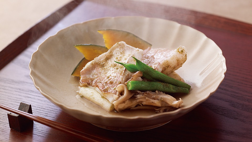これが最初に感じた、正直な印象でした。だけどいざやってみると、用意する材料も少なく、あっけないほどかんたん。鯛を両面焼いてミニトマトを加え、野菜だしとお酒、水を加えてひと煮立ちさせて焼く、だけ。