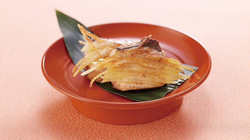フランスで「円く薄いもの」を意味するガレットですが、こちらは切り身に千切りのじゃが芋をくっつけて焼く、ガレット風のオリジナル料理です。