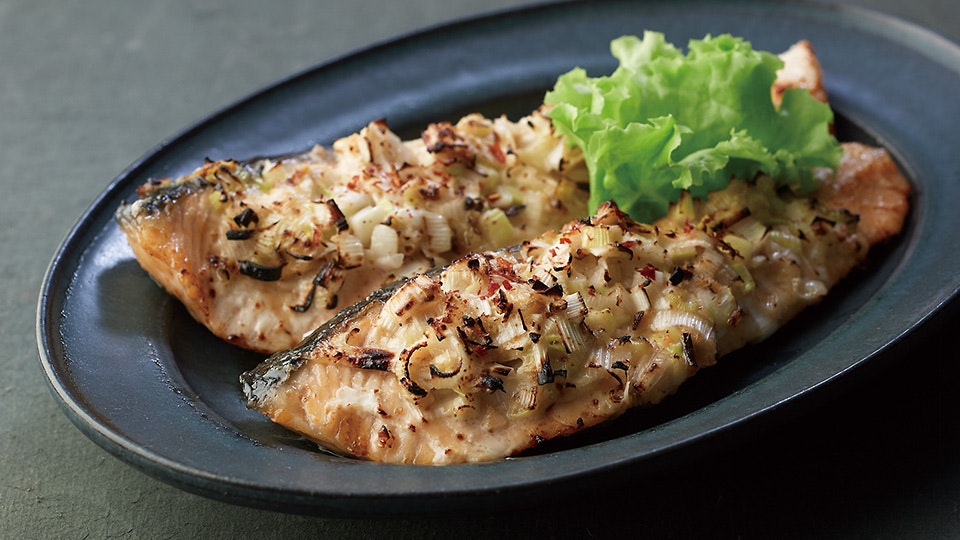 通常は、ねぎと味噌に鰹節、醤油、みりん、砂糖などの合わせ調味料で味付けしますが、今回は椎茸だしとマヨネーズを使ってアレンジ。これを鮭に乗せて焼くことで、ふわりと香ばしさ漂う、なんともごはんのお供にぴったりの一品に仕上がりました。