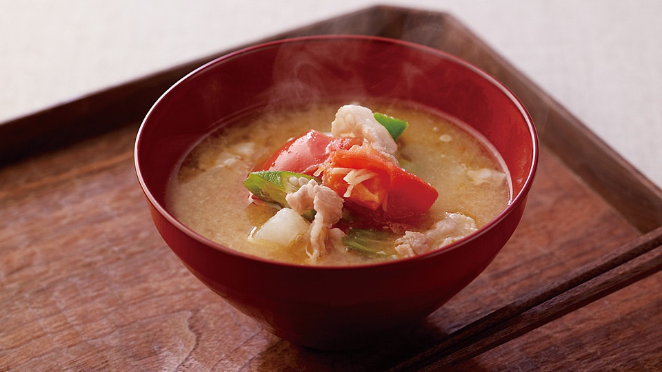 だしを使った王道の一品、と言えばお味噌汁。いつもの具にトマトを加えるだけでも、十分に新しい美味しさを感じてもらえるはず。