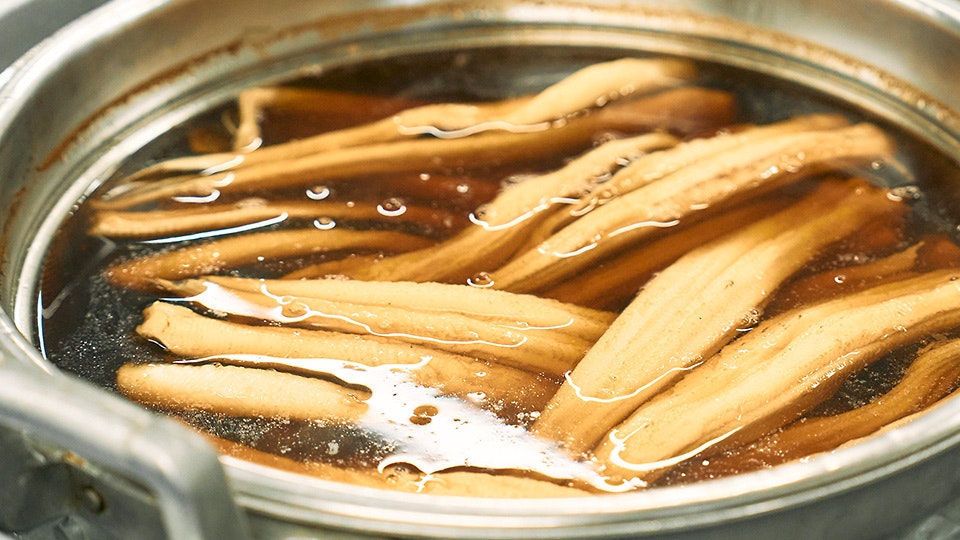 準備が整った穴子はその繊細な食味が引き立つよう、甘すぎず、きりっと上品な調味液で煮穴子にします。