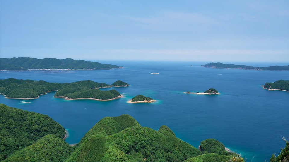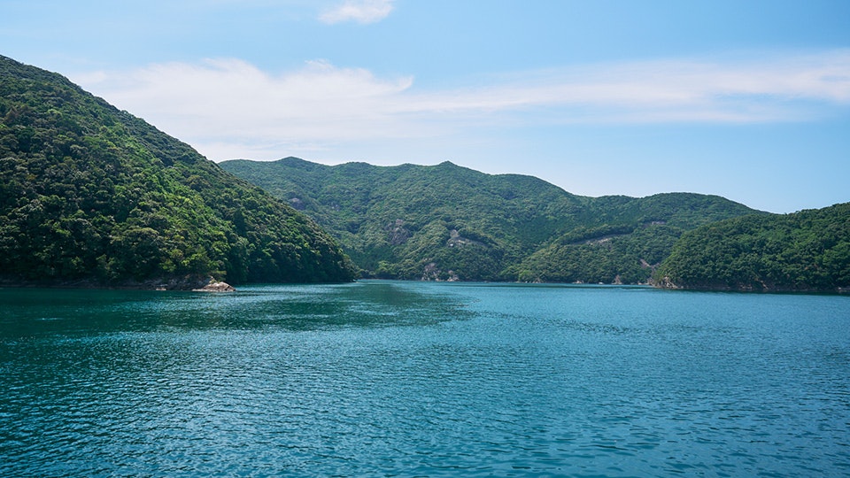対馬は九州最北端に位置する南北に細長い島。島でありながら急峻な山々が連なっており、海から山が立ち上がる景色はなかなかの迫力です。