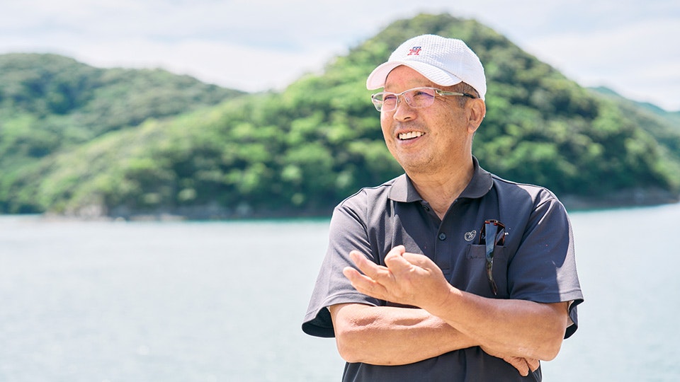 「黄金あなご®」をブランド化したのは、株式会社フレッシュ対馬の島居孝廣さんです。島外で働いた後、対馬の海と魚が恋しくなりUターン。自ら漁に出て、干物やかまぼこをつくるうちに、対馬・西沖の穴子に辿り着きました。専属の漁師さんが獲った穴子の中でも、丸々と太ったものだけを厳選しています。