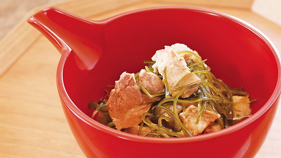 年末年始、家族との集まりにおすすめのレシピとして紹介。茅乃舎だしでじっくりコトコト火を入れた茹で豚をアレンジした一品です。特別な食材でなくとも、だしのおいしさが染みた印象深い仕上がりに。「てまひま」を10号から手掛けるデザイナーも、時折この味を思い出すそうです。