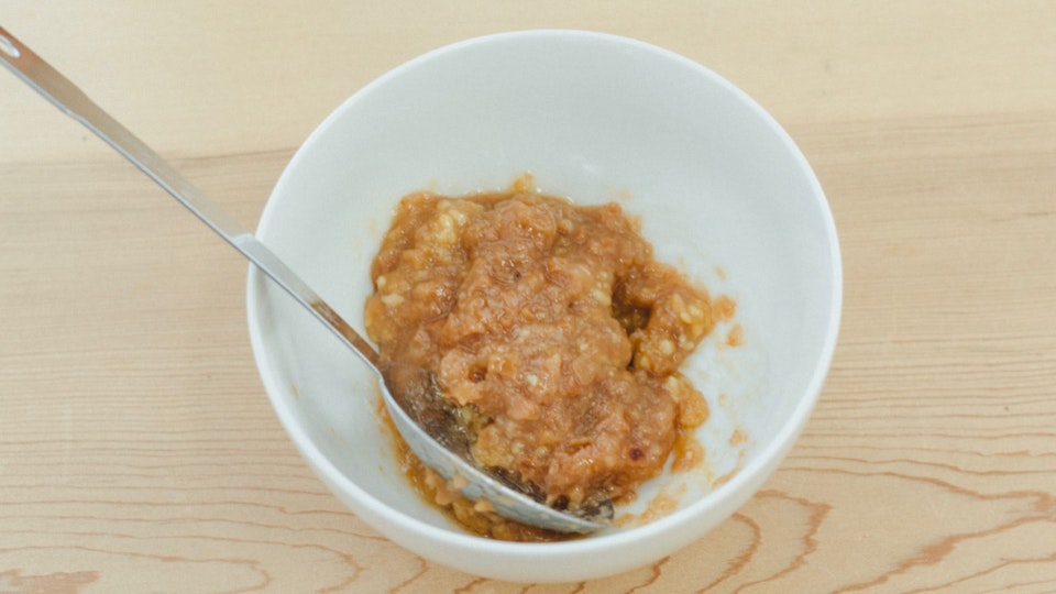 ② ①の梅肉と味噌を1対1の割合で混ぜ合わせる。