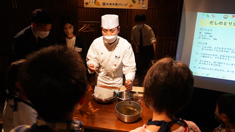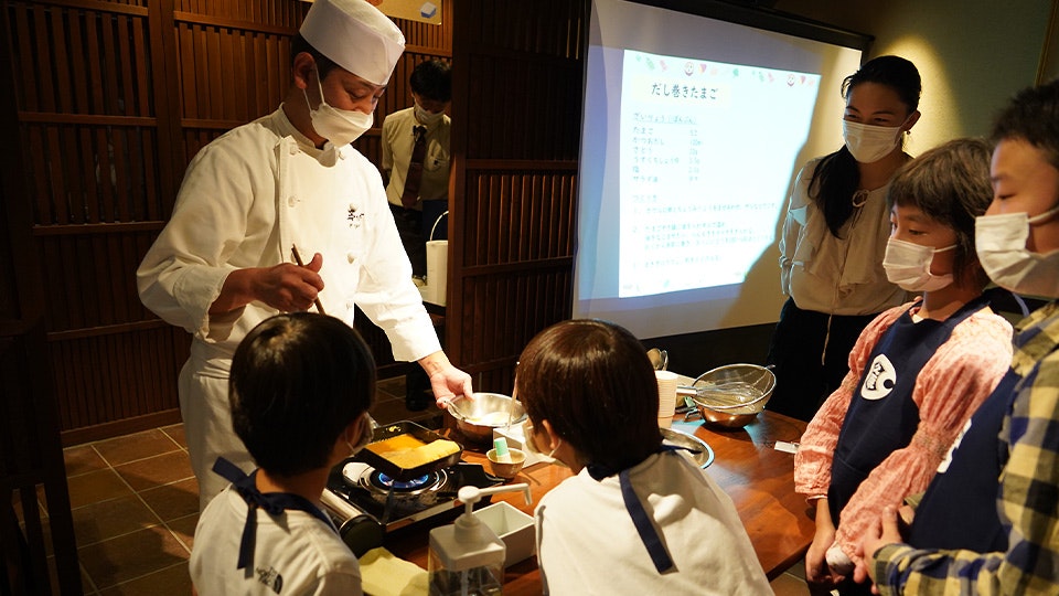 御料理茅乃舎にて、基本のおだしのひき方やだし巻き玉子の上手な巻き方、さつま芋の南蛮漬け、特別スイーツの作り方を学べる、料理教室を開催しました!