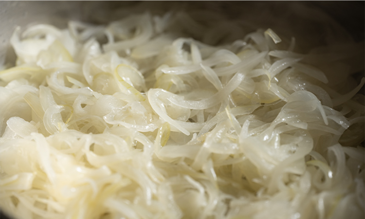 さらに甘みを支えているのは、玉ねぎの甘み。玉ねぎを炒めることで、甘みを引き出しています。砂糖に頼らず、素材の甘みで仕上げています。また、小麦粉によるとろみではなく、とうもろこしや玉ねぎなどの素材を溶け込ませることで、とろりとなめらかなスープをつくりました。
