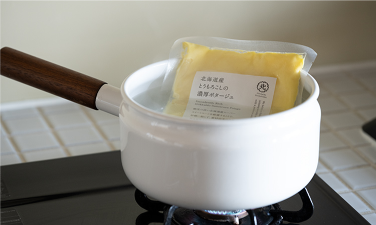 凍ったまま、5~7分湯煎。温めるだけで完成します。