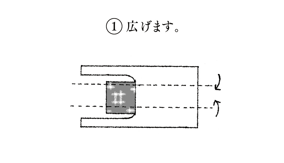 - ポケットに向かって2回折りたたみ、最後にポケットに収納する。